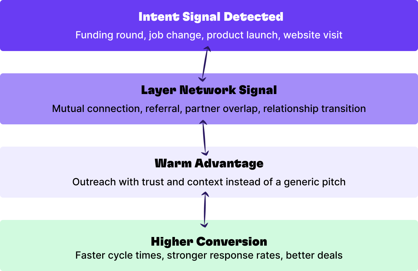 This is where network signals change the game.When you layer network signals on top of intent signals, you move from generic outreach to personalized advantage: