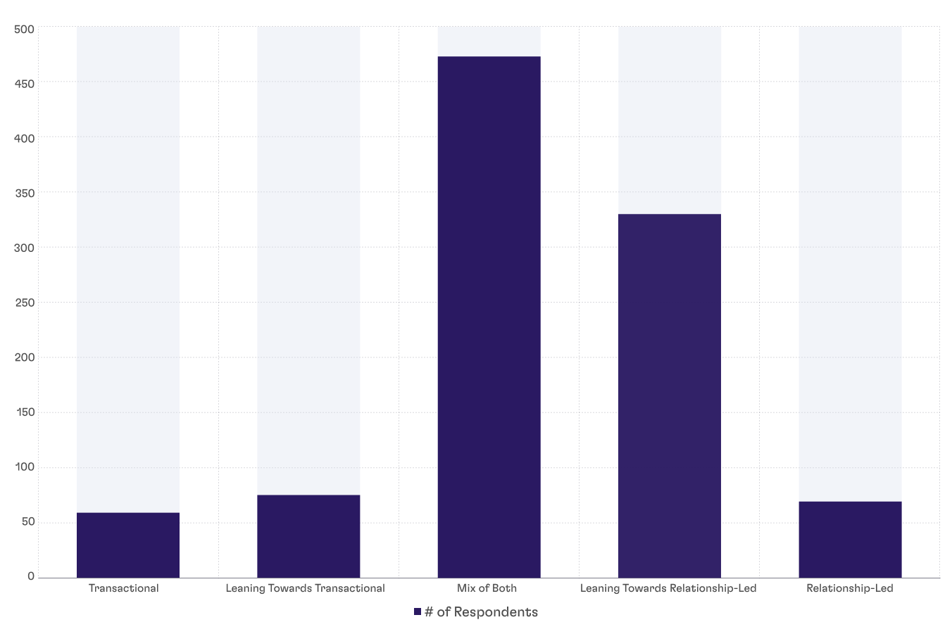 Most teams see their sales motion as a blend rather than an extreme. 40.1% of respondents describe their process as a mix of transactional and relationship-led, while 48.5% lean more heavily toward relationship-led sales (ratings 4–5).