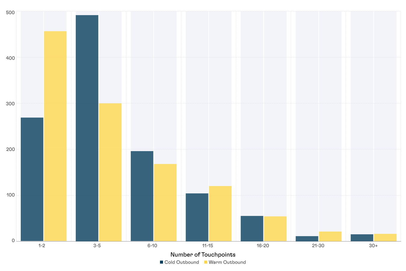 The amount of outbound touch points required to get a deal in your pipeline has gone up 5x in the last 5 years, hitting 1400!