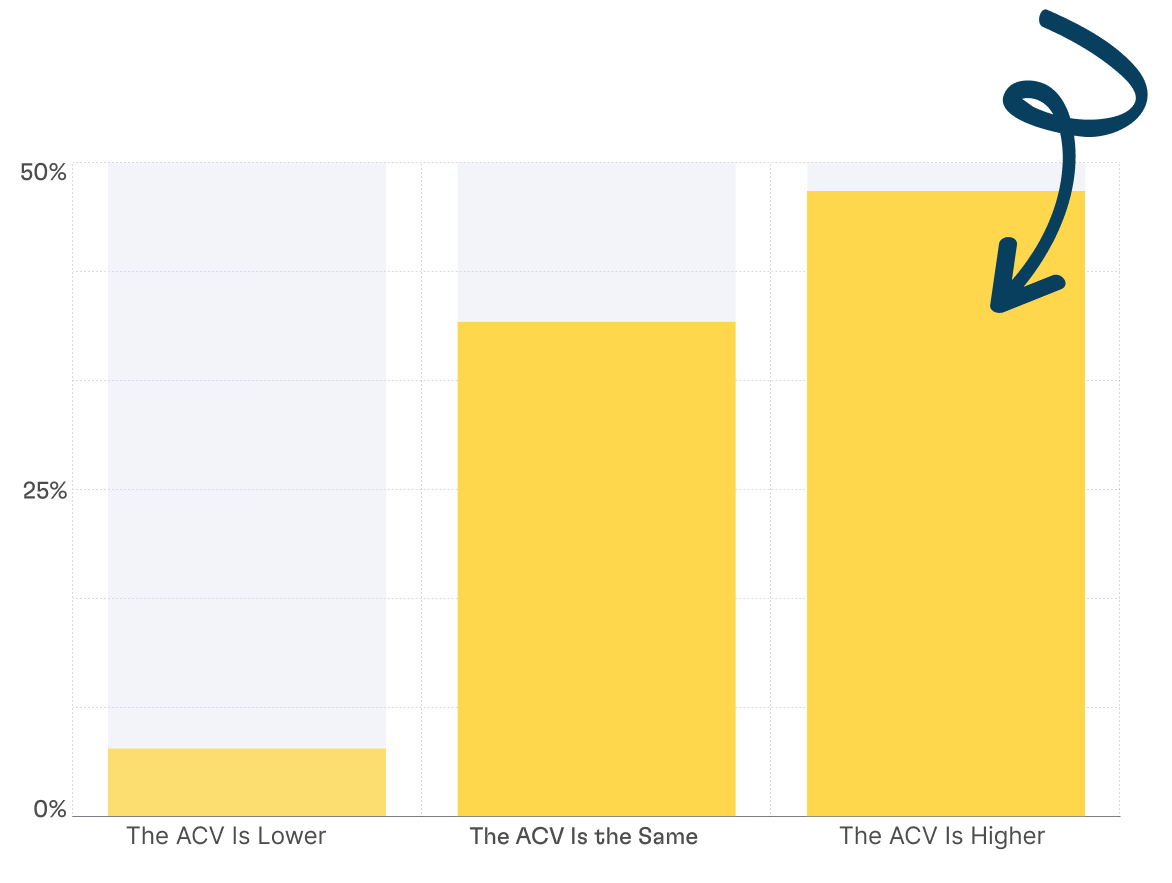 Deal sizes varied considerably as well: while ACVs ranged from under $5k to over $1M, the largest concentration fell between $50k–$250k. Sales cycles also varied, with most respondents operating within 1–6 month cycles.